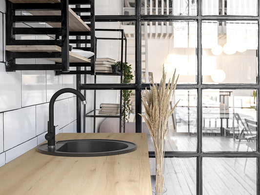 Chiuveta Rotunda cu O Cuva, Ø51 cm, Grafit Lucios + Baterie Flexibila Cadou