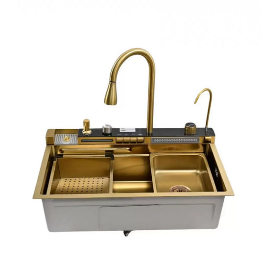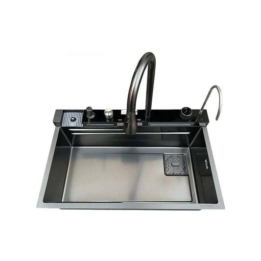 Chiuveta multifunctionala, bucatarie, otel inoxidabil, baterie dubla, accesorii incluse, scurgere cu tocator, Hausberg HBC-9955AU