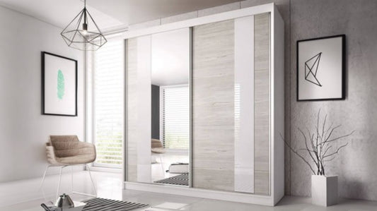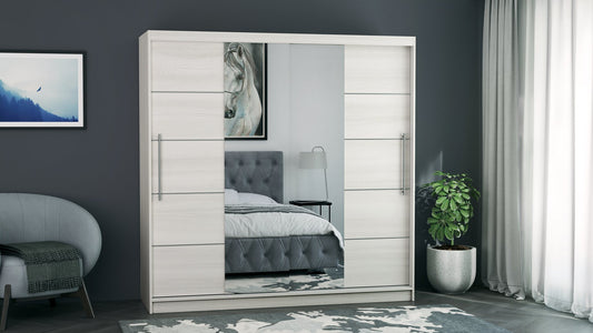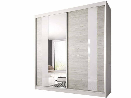 Dressing Rafi cu oglinda, 150x200x60 cm, alb/stejar