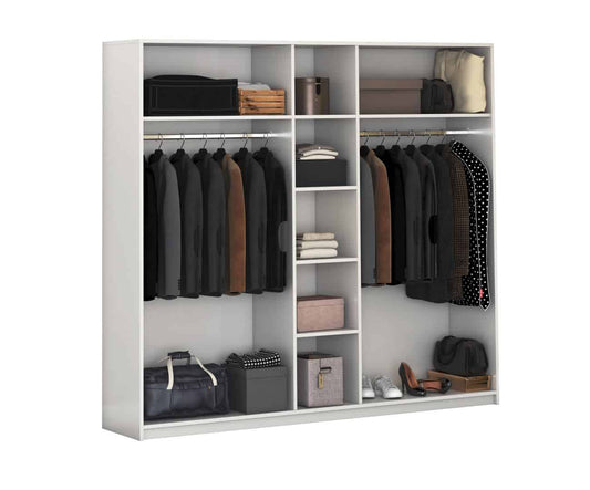 Dulap Valentin, Alb/Gri, cu oglinda, 233x210x57 cm, 5 usi