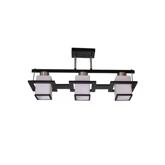 Lustra Clasica Aramis cu Lemn Abajur Patrat 3x E27 Alb Negru