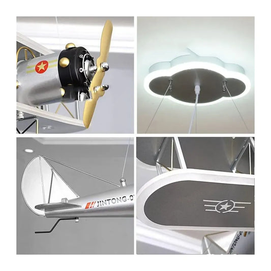 Reducere!Lustra LED Suspendata 74W Avion Alb Gri