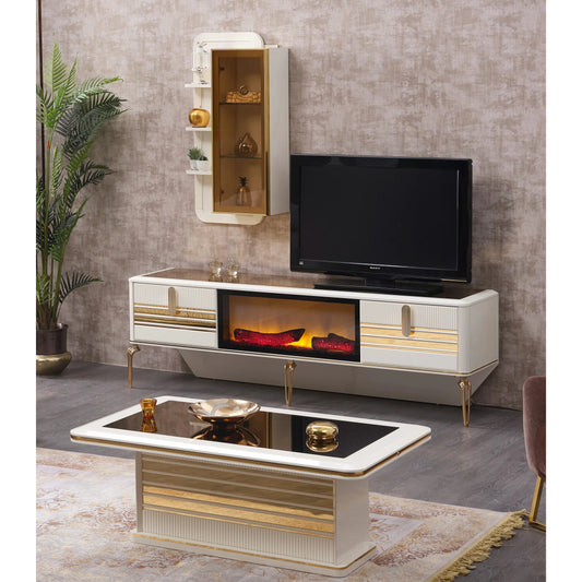 Măsuță de Cafea de Lux Berlin, Alb Fildeș și Oglindă Aurie