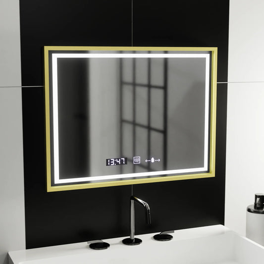 Oglinda LED Rectangulara, 100x80cm, Verite Royale Gold Motion Glow Marcello, Sistem Dezaburire, Ceas & Termometru, Dimabila