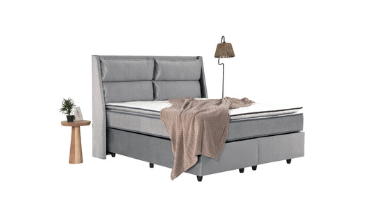 Pat Aris, 160x200 cm, cu somiera metalica rabatabila si saltea plus topper