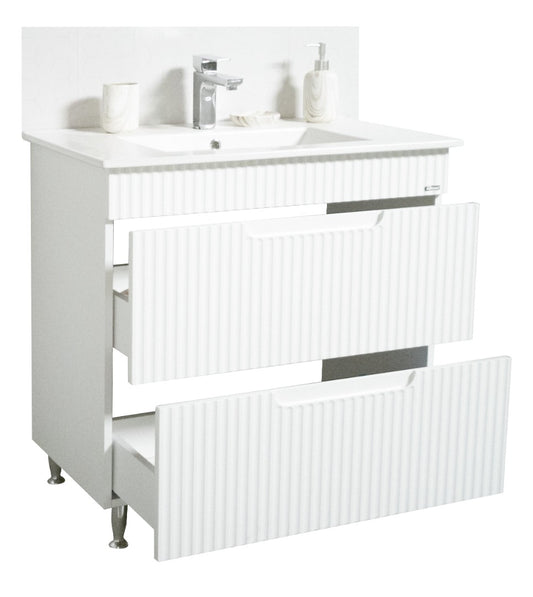 Bază MDF și lavoar Seria 033, 80cm, cu sertare, alb rustic