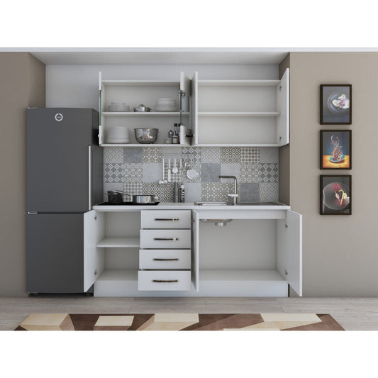 Bucatarie Alfa, 180cm, cu vitrina si blat termic