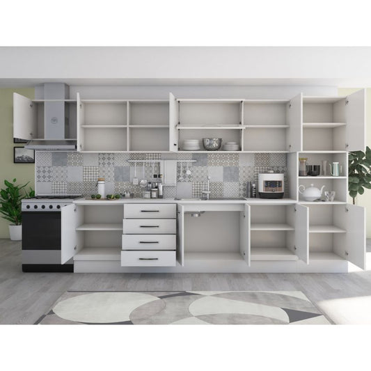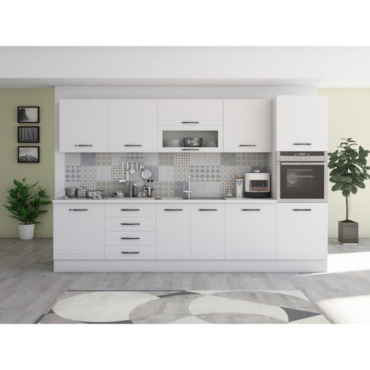 Bucatarie Alfa 300, corp hota si soldat, cu vitrina, blat termic