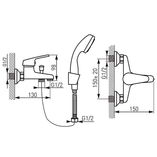 Smile - Baterie perete cada-dus cu set de dus inclus, crom
