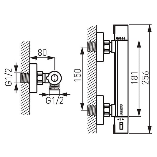 Basic - Baterie perete dus cu set de dus inclus, crom