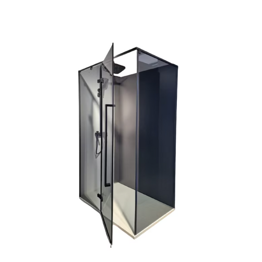 Cabina de dus patrata din sticla securizata 5 mm si aluminiu negru mat, 90 x 90 cm, GLADYS
