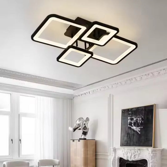Lustra LED cu telecomanda ELLA 67W, 4 Patrate, lumina Rece/Calda/Neutra, Dimabila, Negru