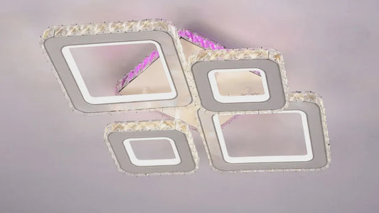 Lustra LED cu telecomanda si cristal TERRANO RGB 162W, 4 Patrate, lumina Rece/Calda/Neutra, Dimabila, Alb Crom Lucios