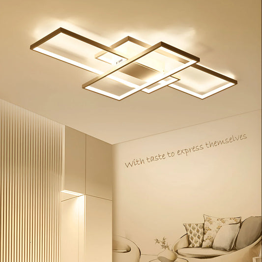 Lustra LED cu telecomanda ELLA 85W, 4 Patrate, lumina Rece/Calda/Neutra, Dimabila, Alb