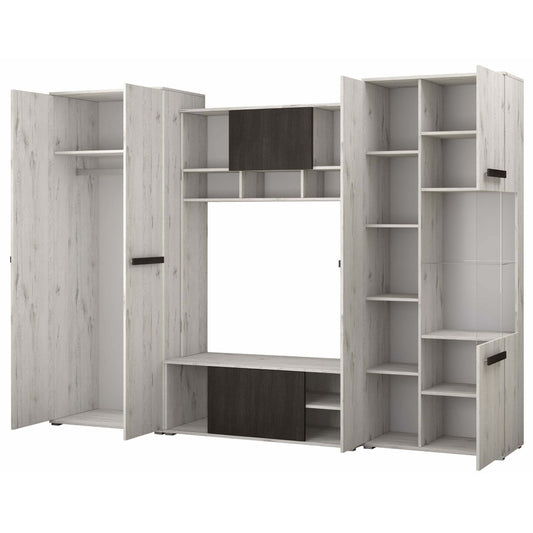 Bibliotecă living Paul, 280 cm, Alb Murdar / Pin Negru Norvegian