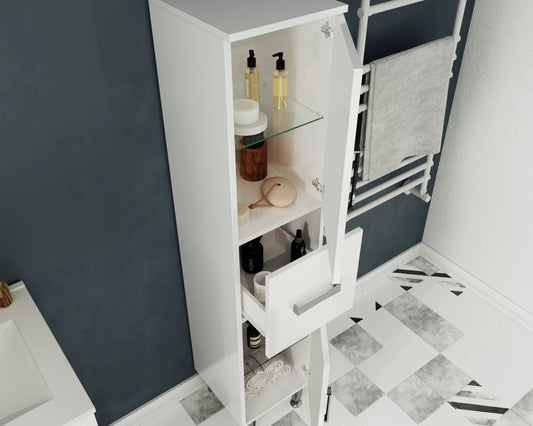 Coloana inalta Savini Due Madrid, cu doua usi reversibile si un sertar, alb, 31.5 x 198 x 33.5