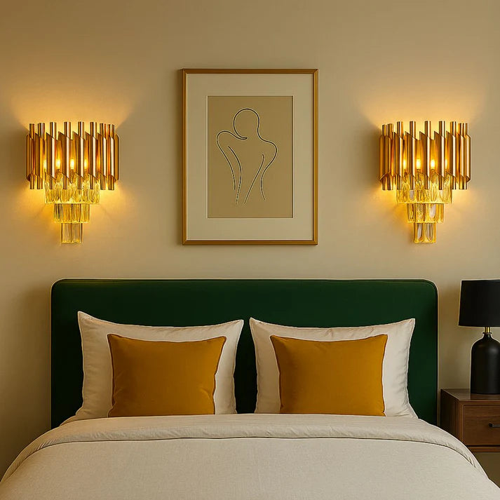 Adauga un plus de eleganta si rafinament in decorul tau cu aplica tip candelabru Versailles Piccolo, disponibila la La Cucu. Cu o structura metalica aurie si cristale dispuse in cascada, aceasta piesa decorativa transforma orice incapere intr-un spatiu luminos si sofisticat. Designul aplicat pe perete ofera un efect vizual spectaculos, perfect pentru living, dormitor, hol sau zona de dining.