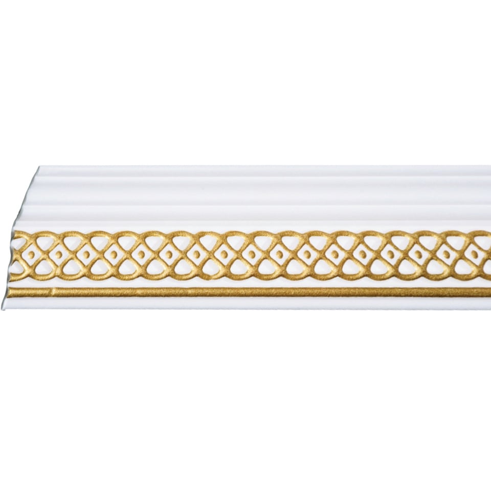 Bagheta decorativa de colt M30BZ, din polistiren, alb/auriu, 8 x 6 x 200 cm