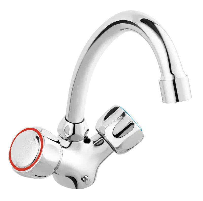 Aceasta baterie stativa pentru lavoar este o alegere practica si durabila pentru baile rezidentiale. Designul compact si functional o face usor de integrat pe majoritatea lavoarelor, iar constructia din alama asigura rezistenta in utilizare zilnica. Aeratorul ofera un jet uniform, contribuind la un flux de apa confortabil. Produs disponibil in magazinul La Cucu.