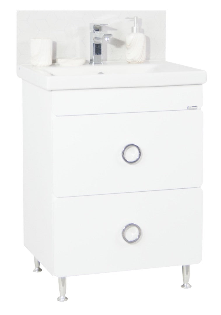 Completeaza-ti baia cu baza de mobilier si lavoarul din Seria 080, cu un design modern si finisaj alb premium. Avand dimensiuni compacte, aceasta baza de 60 cm se integreaza perfect in baile de dimensiuni mici si medii, oferind spatiu de depozitare practic si organizat prin cele doua sertare cu sistem soft close.
