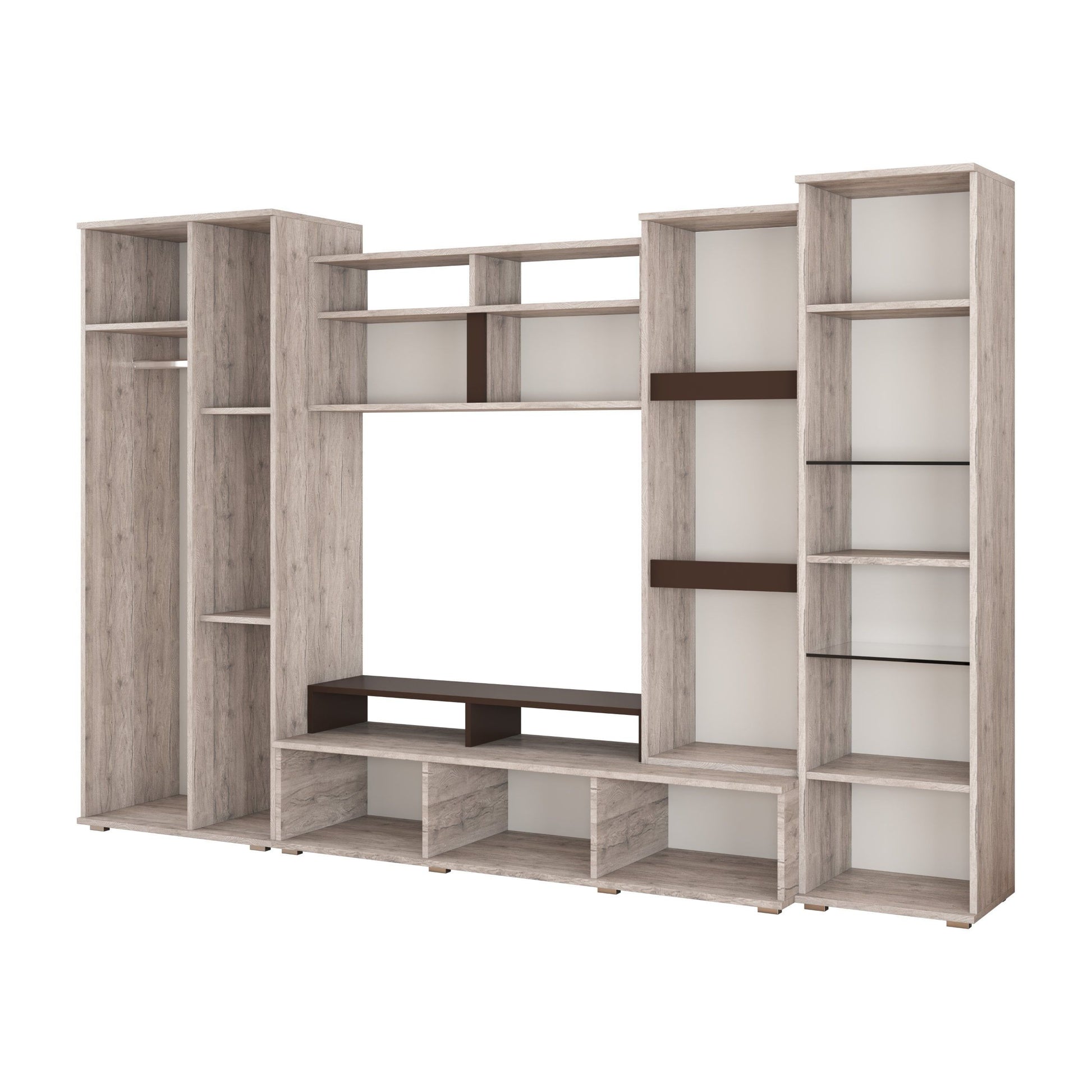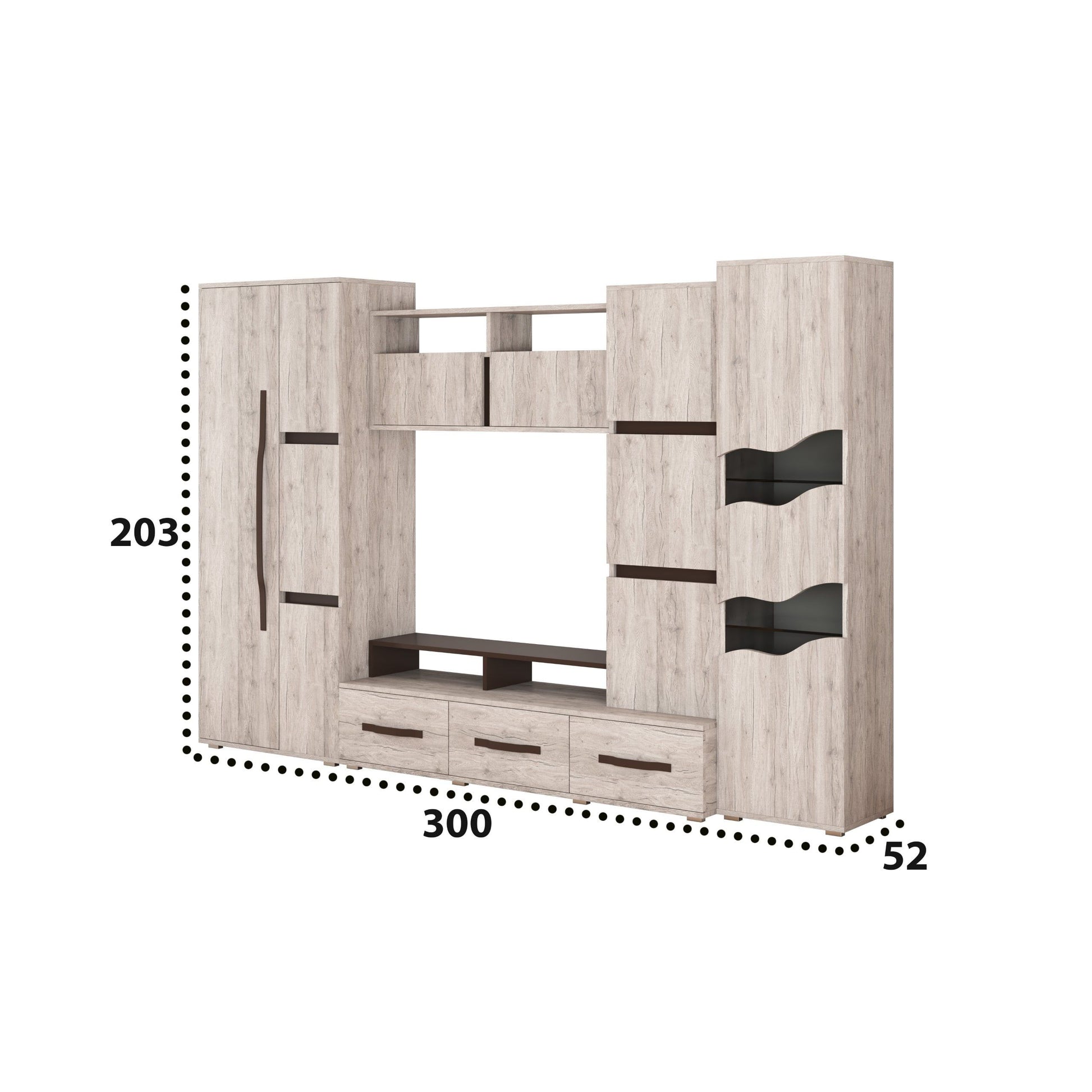 Bibliotecă living Sebastian, 300 cm, Alb Murdar / Negru