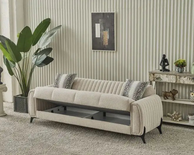Comanda canapeaua extensibila Palermo de la La Cucu si adauga eleganta, confort si spatiu suplimentar de depozitare in livingul tau.