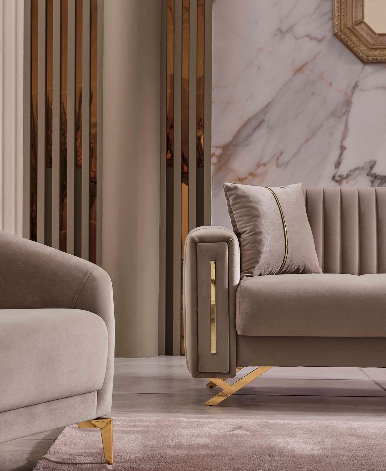 Comanda canapeaua extensibila Semfoni de la La Cucu si bucura-te de un spatiu modern, elegant si functional, perfect pentru relaxare si depozitare.