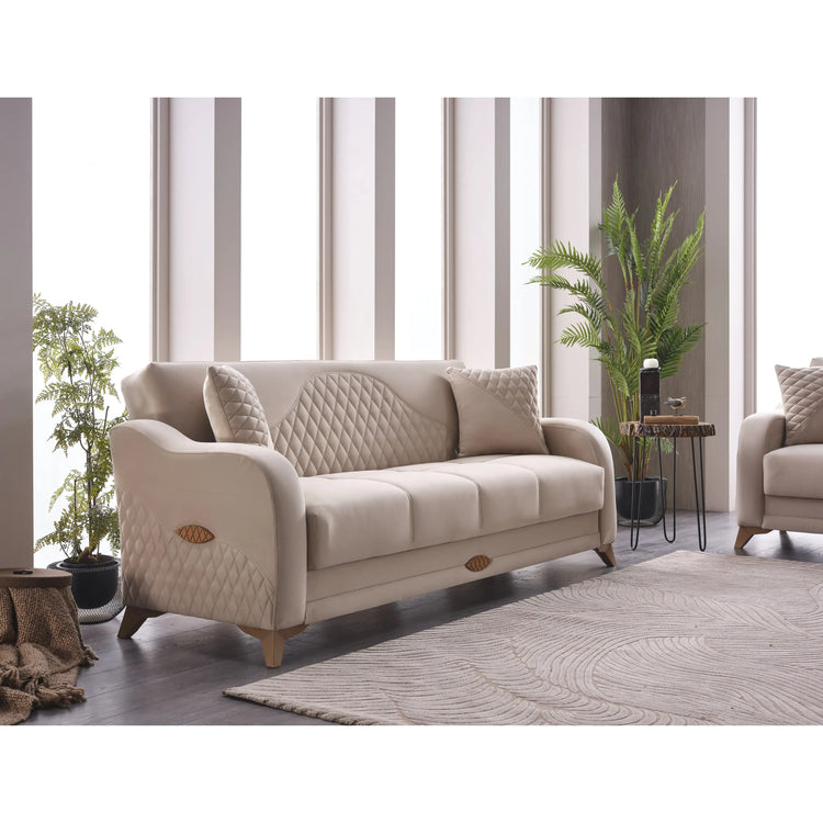 Liniile rotunjite si detaliile atent realizate adauga un plus de rafinament, facand din aceasta canapea elementul central al livingului tau.