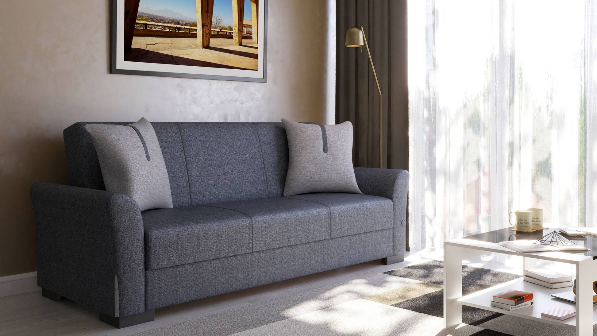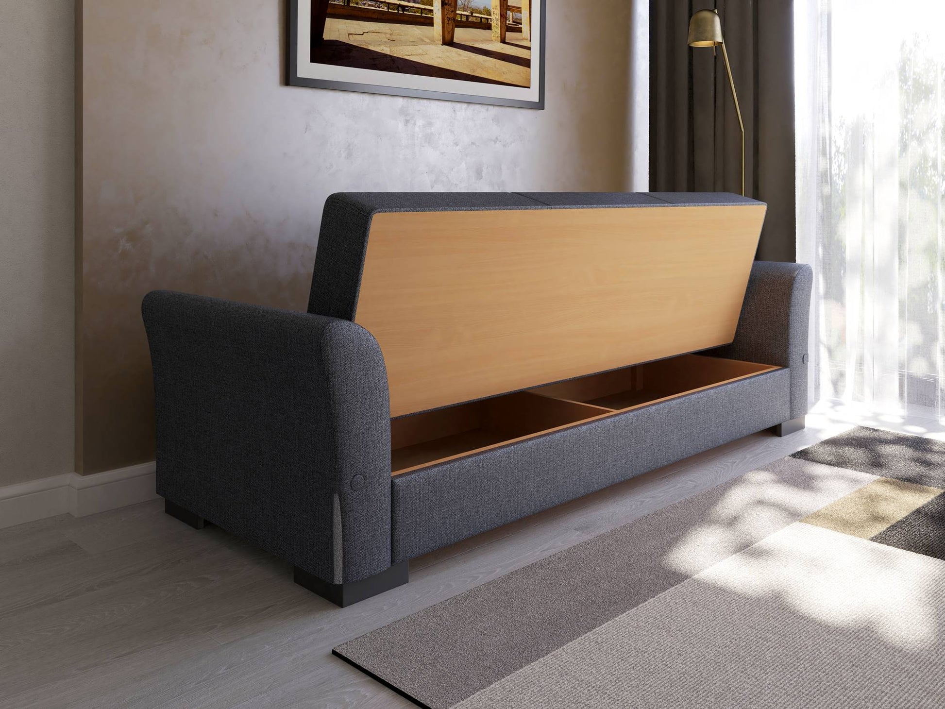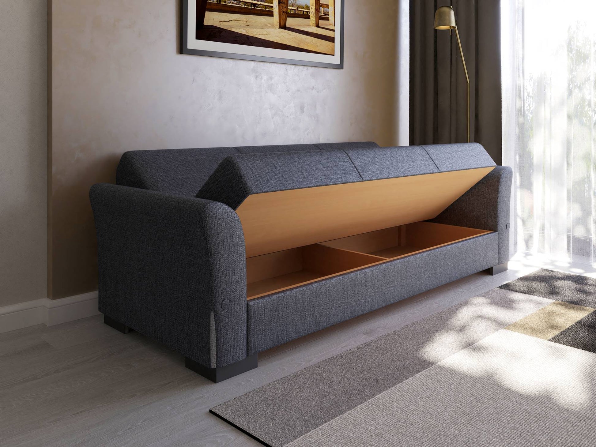 Comanda canapeaua extensibila Mina de la La Cucu si adauga confort, stil si spatiu suplimentar de depozitare livingului tau.