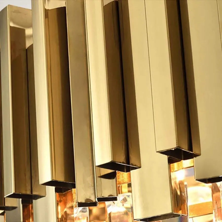 Constructia pe lant si inaltimea reglabila permit integrarea usoara in orice tip de amenajare, iar finisajul auriu pune in valoare reflexiile cristalelor, adaugand un plus de lux si stralucire incaperii.