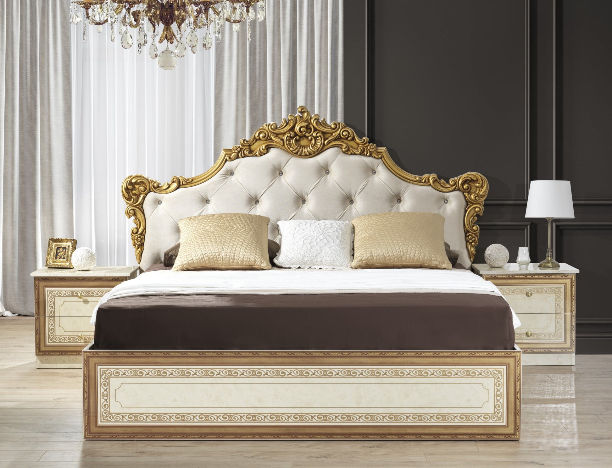 Dormitor Anette, 160x200 cm, 6a, bej/auriu, somiera metalica si saltea incluse