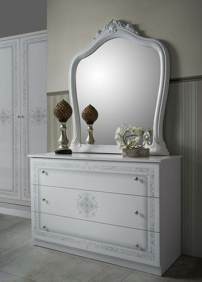 Dormitorul Luisa aduce in prim-plan eleganta si rafinamentul, fiind alegerea perfecta pentru cei care isi doresc un spatiu luminos, modern si complet echipat. Designul alb, cu linii fine si detalii atent finisate, creeaza o atmosfera calma si relaxanta, potrivita pentru un somn odihnitor si un decor armonios.