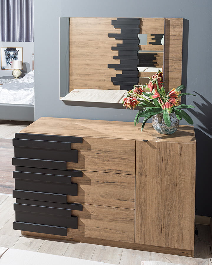 Dormitorul Mozart imbina stilul modern cu functionalitatea, fiind alegerea perfecta pentru cei care isi doresc un spatiu elegant, ordonat si confortabil. Cu un design contemporan in nuante de sonoma si negru, acest set aduce un echilibru vizual placut si o nota distincta de rafinament oricarui dormitor.
