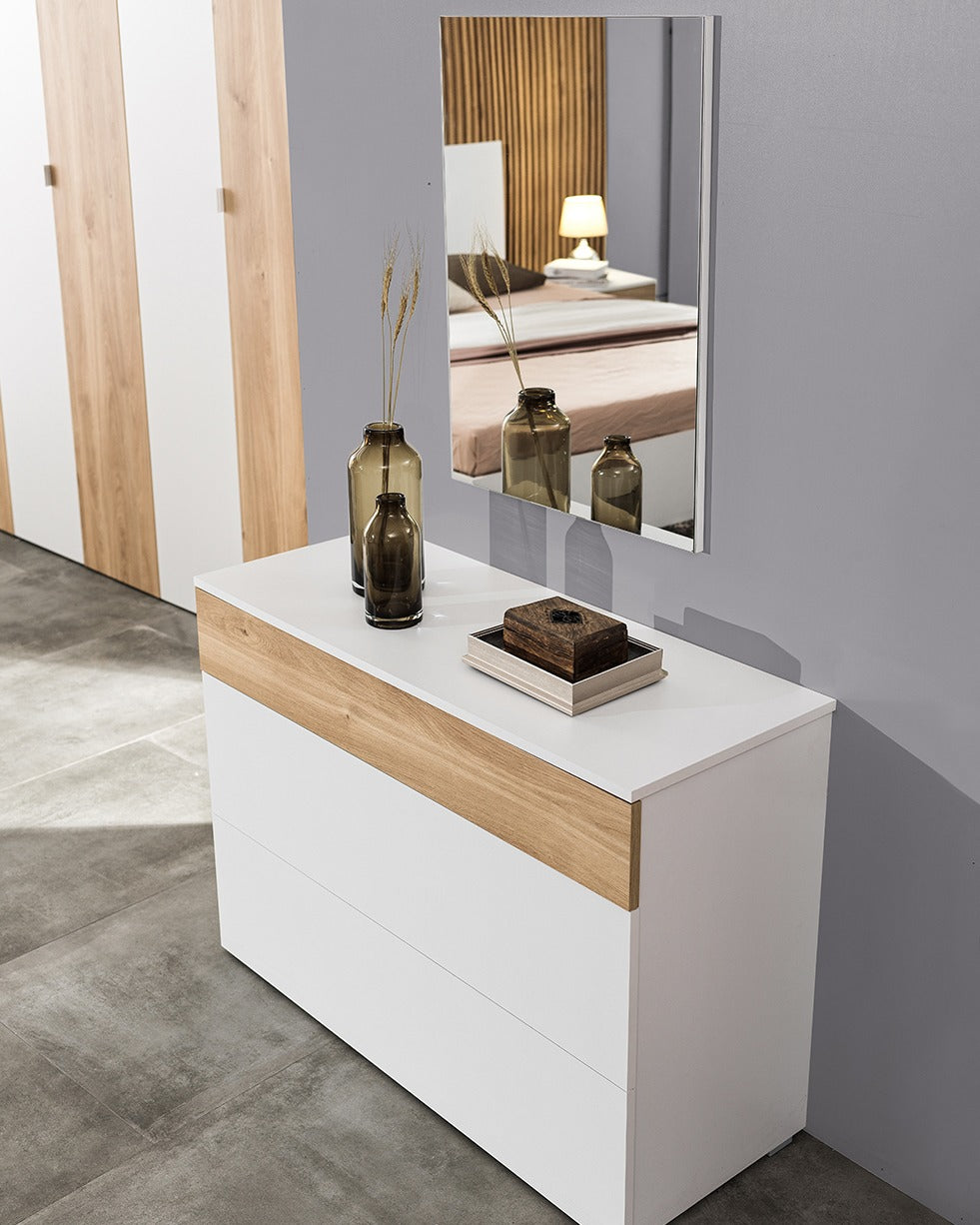 Dormitorul Patrizia imbina perfect eleganta moderna cu functionalitatea, oferind un spatiu confortabil si rafinat. Designul sau in nuante calde de alb si sonoma adauga luminozitate si echilibru, creand un ambient placut si relaxant in orice incapere.