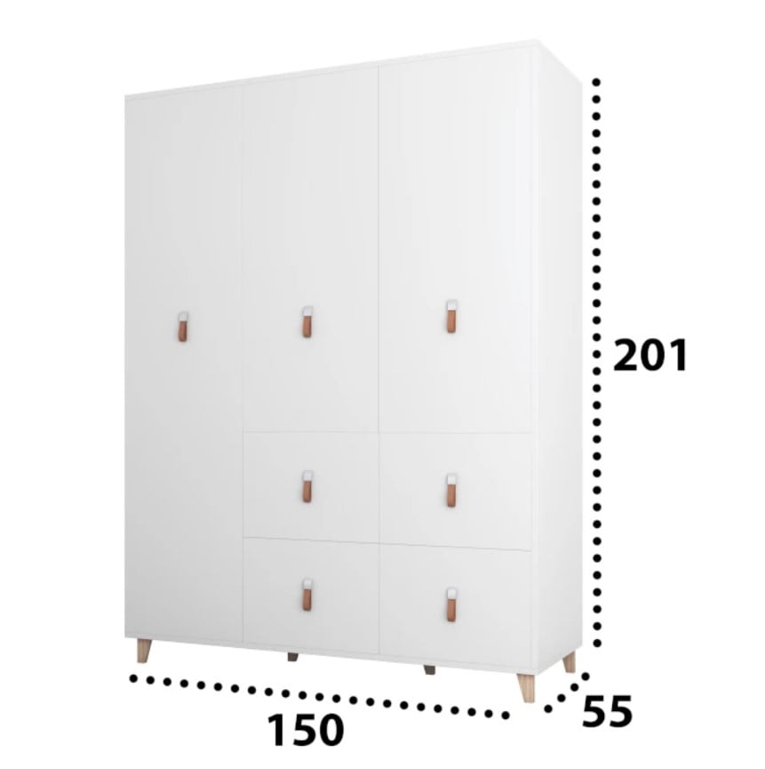 Fabricat din PAL melaminat de inalta calitate, dulapul este rezistent la zgarieturi, umezeala si temperaturi ridicate, asigurand durabilitate in timp. Compartimentarea inteligenta permite o organizare eficienta a garderobei, in functie de sezon sau categorie. Culoarea alba adauga un plus de luminozitate si creeaza senzatia de spatiu mai mare.