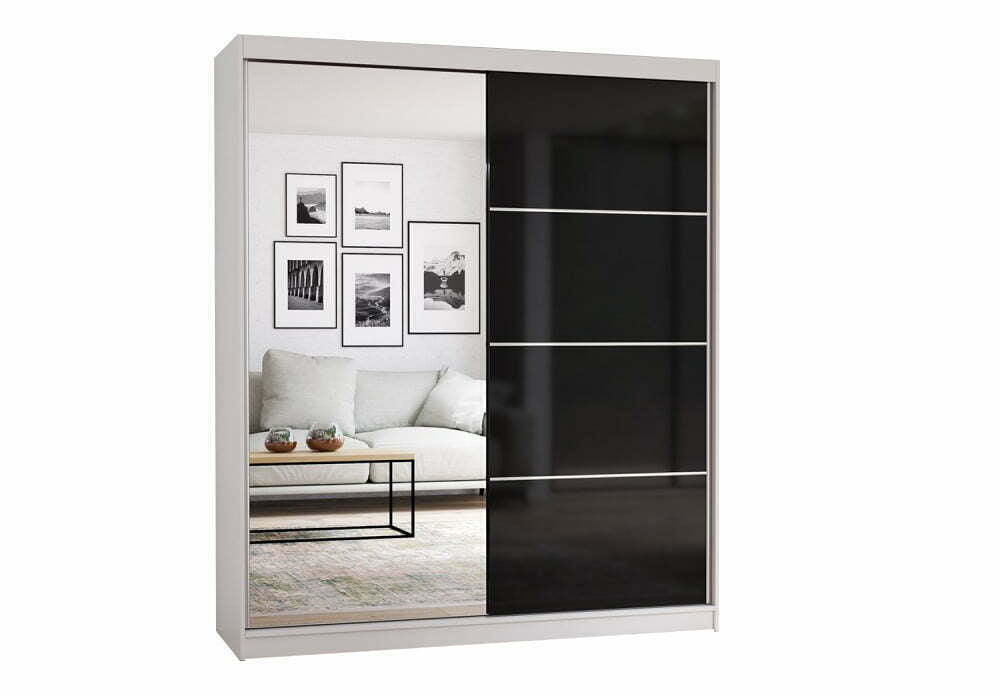 Cele 2 usi glisante economisesc spatiu si includ o oglinda ce adauga luminozitate si senzatia unui spatiu mai mare. Compartimentarea inteligenta, cu rafturi spatioase si bara pentru umerase, permite organizarea garderobei pe categorii si se potriveste perfect pentru depozitarea hainelor si accesoriilor.