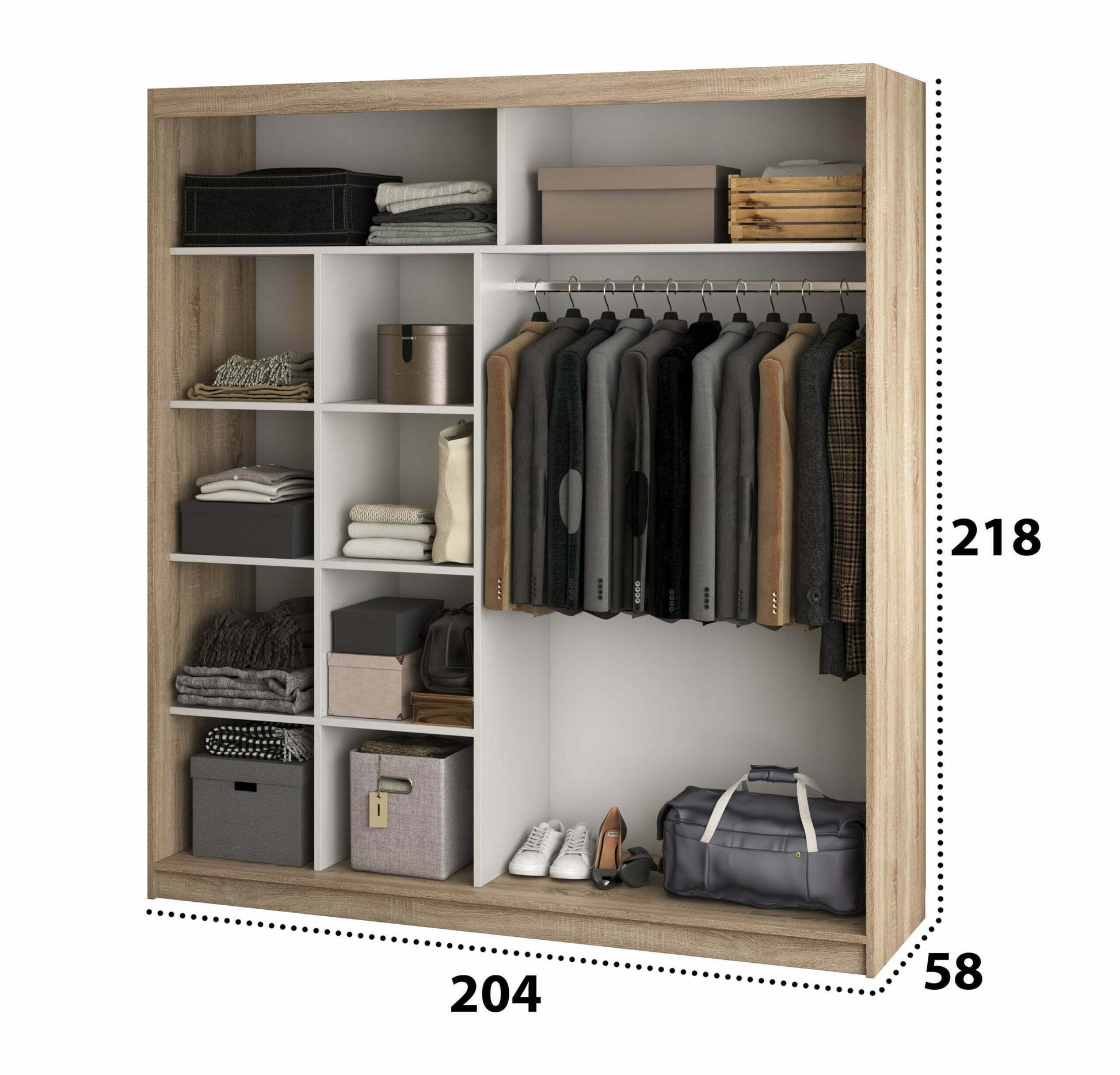 Dressingul Radu imbina designul modern cu functionalitatea inteligenta, oferind spatiu generos pentru depozitare. Cele 2 usi culisante optimizeaza spatiul, iar compartimentarea bine gandita, cu 10 rafturi si o bara pentru umerase, permite organizarea eficienta a hainelor, accesoriilor si lenjeriilor.