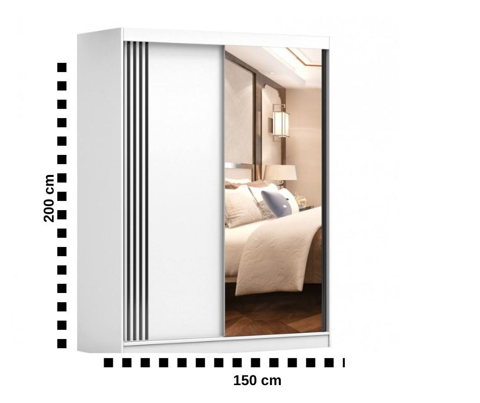 Cele 2 usi glisante economisesc spatiu si faciliteaza accesul la interior, iar oglinda amplasata pe una dintre ele adauga luminozitate si creeaza senzatia unei incaperi mai mari. Compartimentarea practica include rafturi spatioase si o bara pentru umerase, astfel incat poti organiza hainele si accesoriile pe categorii.