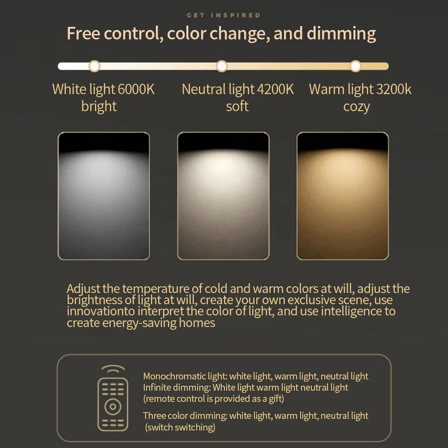 Iluminarea este dimabila si permite selectarea temperaturii de culoare – rece, neutra sau calda – pentru a adapta atmosfera in functie de momentul zilei. Telecomanda inclusa ofera control rapid si confortabil, iar fluxul luminos asigura iluminare eficienta si uniforma.