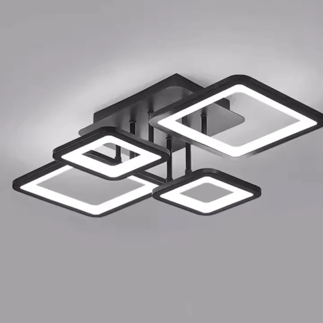 Lustra LED cu telecomanda ELLA 85W, 4 Patrate, lumina Rece/Calda/Neutra, Dimabila, Negru