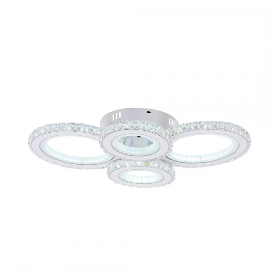 Lustra LED cu telecomanda si cristal NOVA ROTONDA RGB 82W, 4 Cercuri, lumina Rece/Calda/Neutra, Dimabila, Alb
