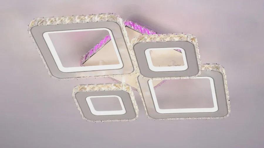 Configuratia cu 4 patrate creeaza un joc vizual modern, ideal pentru dormitor, living sau bucatarie. Tehnologia LED ofera o putere de 162W si un flux luminos de 12960 lm, iluminand eficient chiar si incaperi mai mari.