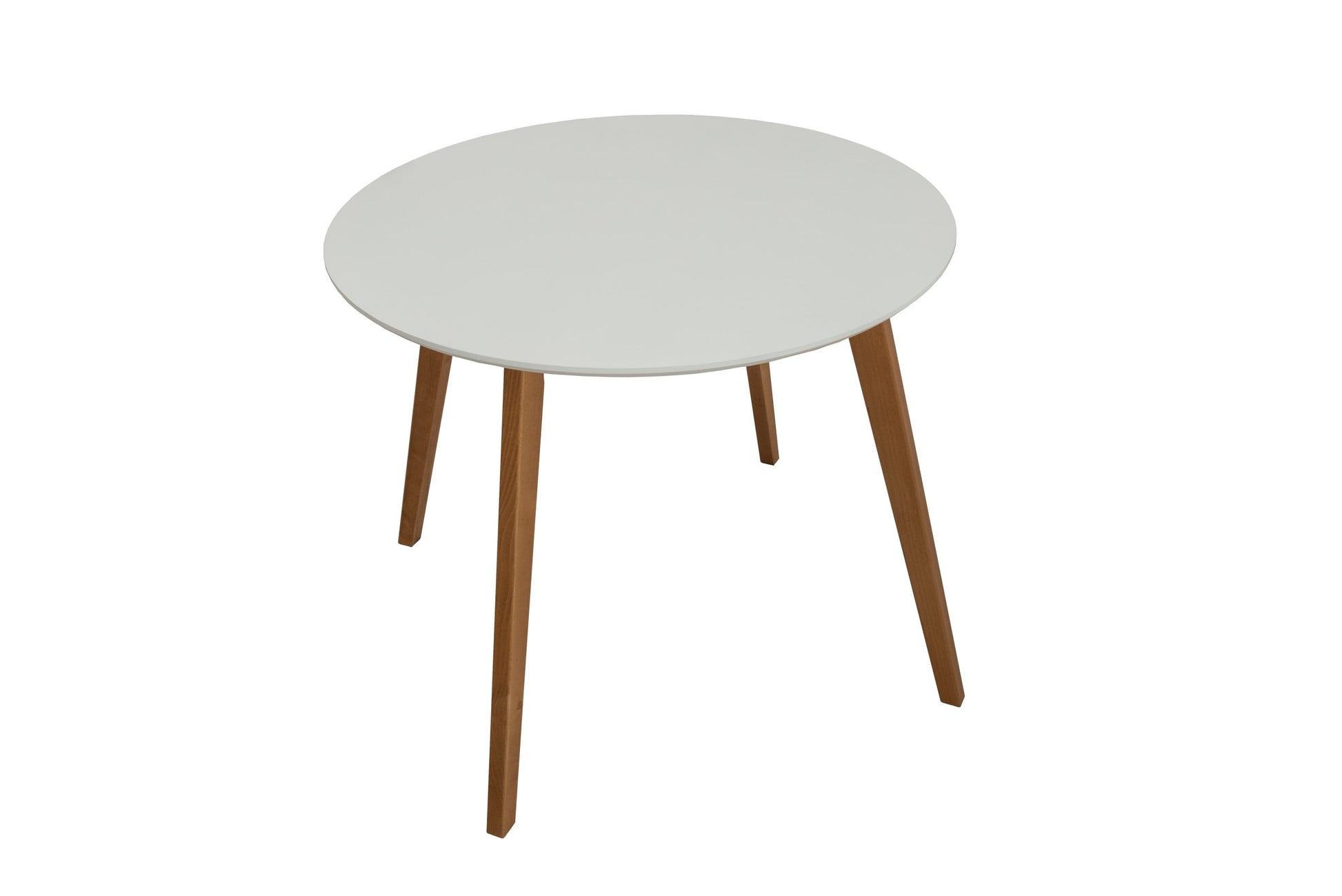 Masa living fixa 90 cm max s, alb/natur, lemn masiv din fag si blat din mdf