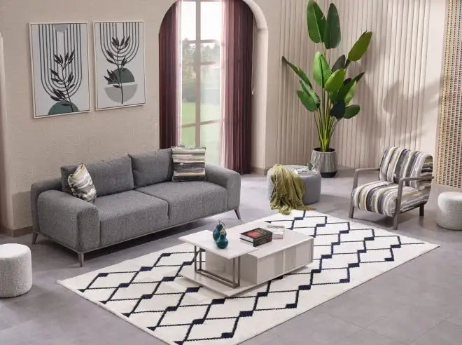 Eleganta si rafinamentul se imbina perfect in masuta de cafea de lux Cenova, disponibila la La Cucu. Cu un design modern si detalii atent lucrate, aceasta piesa aduce un aer sofisticat si echilibrat in orice living. Liniile drepte, combinatia de materiale premium si contrastul subtil dintre nuanta alb glaciar a blatului si structura in gri antracit creeaza o atmosfera moderna si exclusivista.