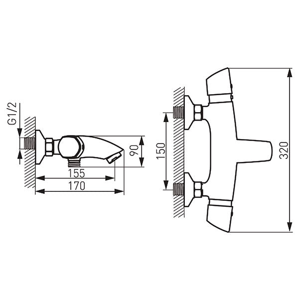 Metalia 57 - Baterie termostatata perete cada-dus, crom
