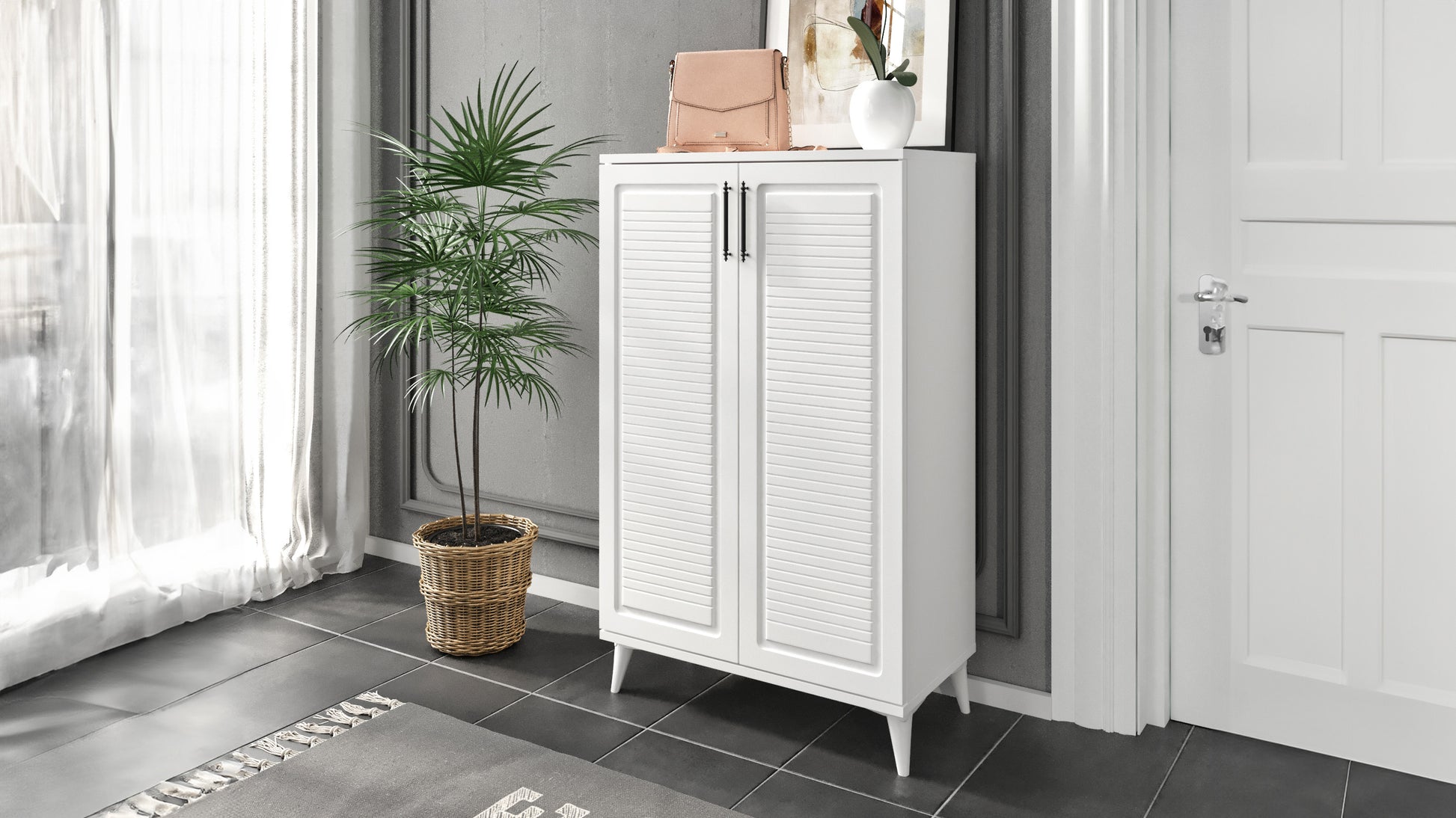 Elegant, rezistent si usor de integrat in orice decor, pantofarul Fuga alb de la La Cucu este alegerea ideala pentru o organizare eficienta a incaltamintei si un hol mereu aranjat.