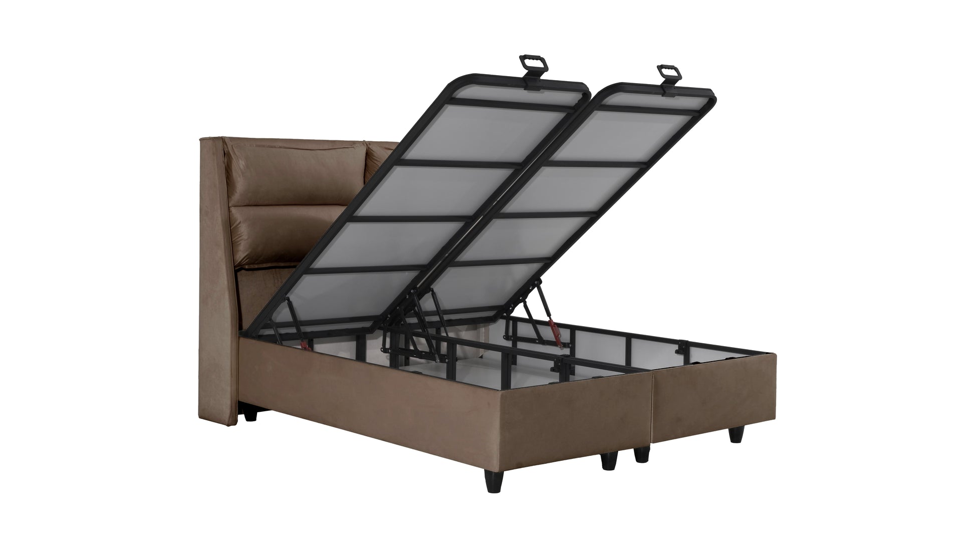 Somiera metalica rabatabila aduce un avantaj practic, permitand acces rapid la spatiul de depozitare de sub pat, ideal pentru lenjerii, perne sau alte obiecte voluminoase.