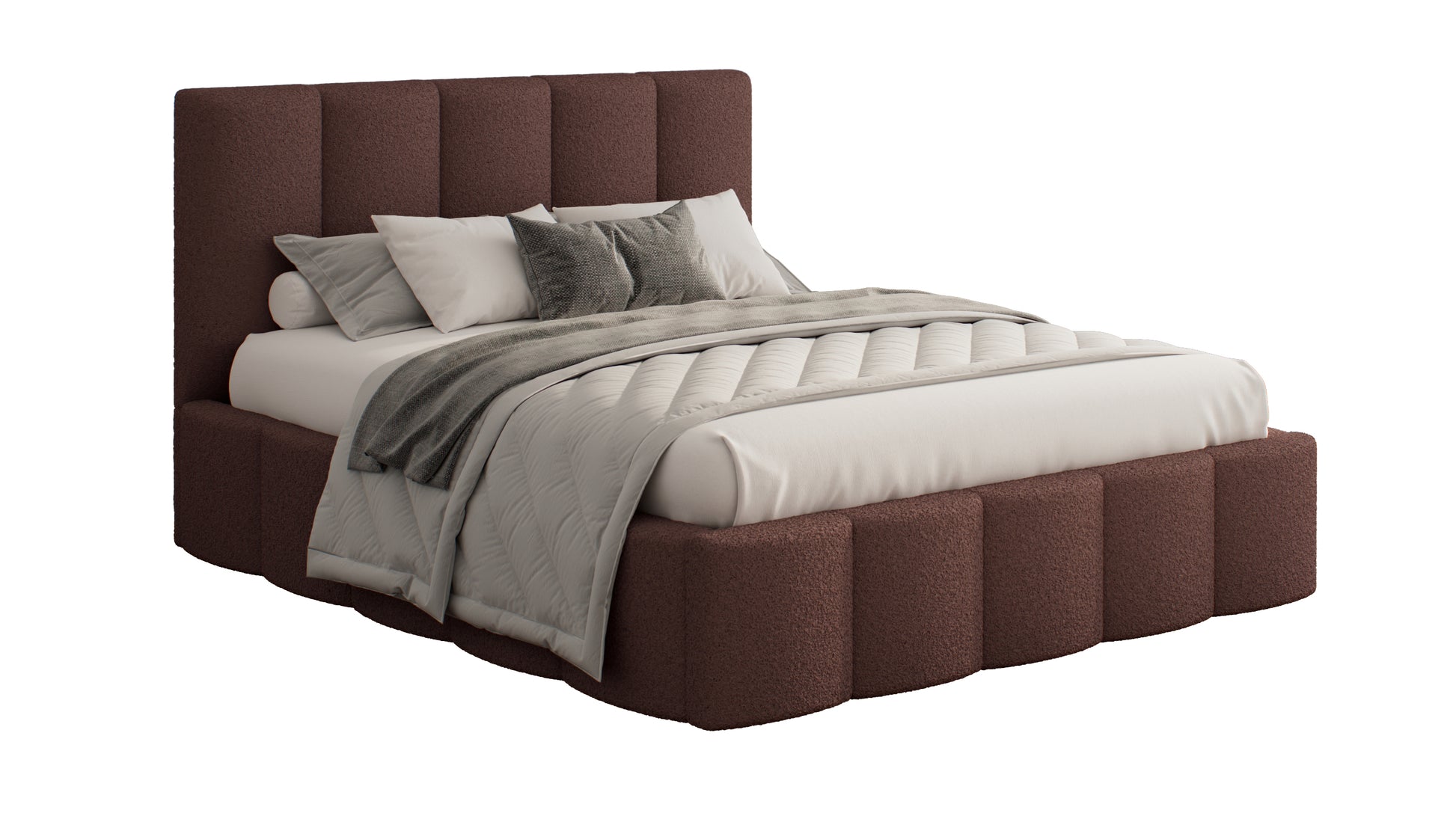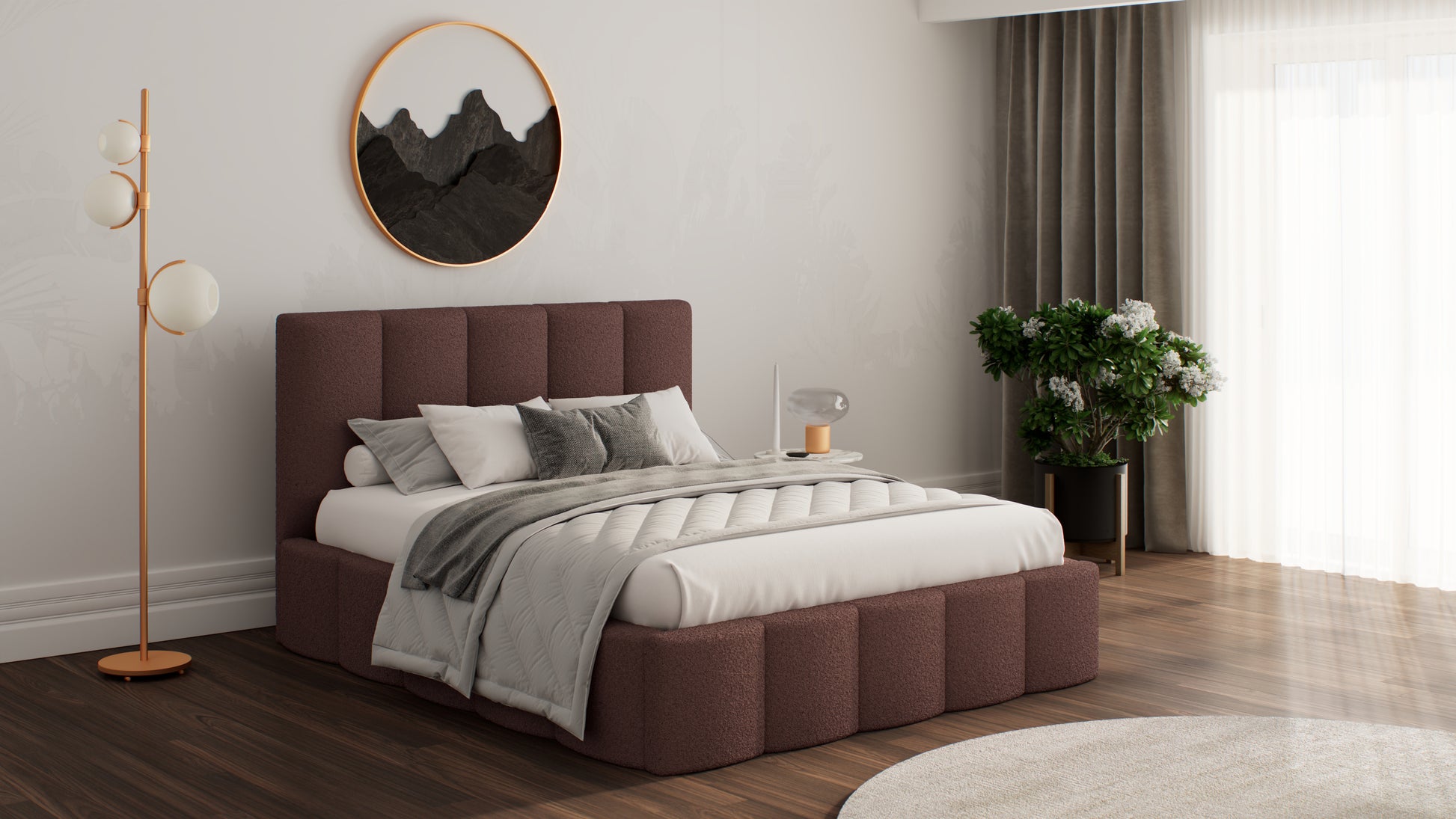 Patul Como 160x200 cm maro este alegerea perfecta pentru cei care doresc sa combine eleganta, confortul si durabilitatea intr-o singura piesa de mobilier. Tapitat cu material textil boucle de inalta calitate si prevazut cu un burete generos de 10 cm grosime, acest pat ofera atat un design modern, cat si un confort superior. Nuanta calda de maro aduce un plus de rafinament si armonie oricarui dormitor.