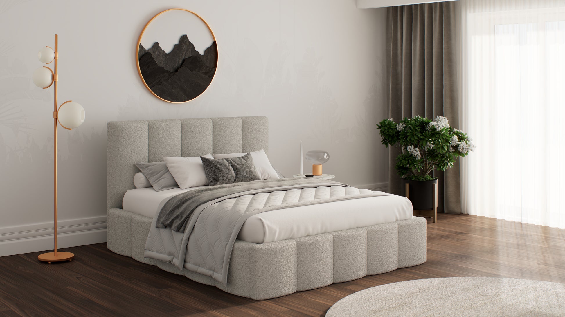 Patul Como 160x200 cm verde pastel este alegerea ideala pentru cei care isi doresc un dormitor elegant si relaxant. Tapitat cu material textil boucle de inalta calitate si un strat generos de burete cu grosimea de 10 cm, acest model imbina designul modern cu confortul suprem. Nuanta de verde pastel adauga prospetime si rafinament incaperii, transformand patul Como intr-o piesa centrala in decorul dormitorului.