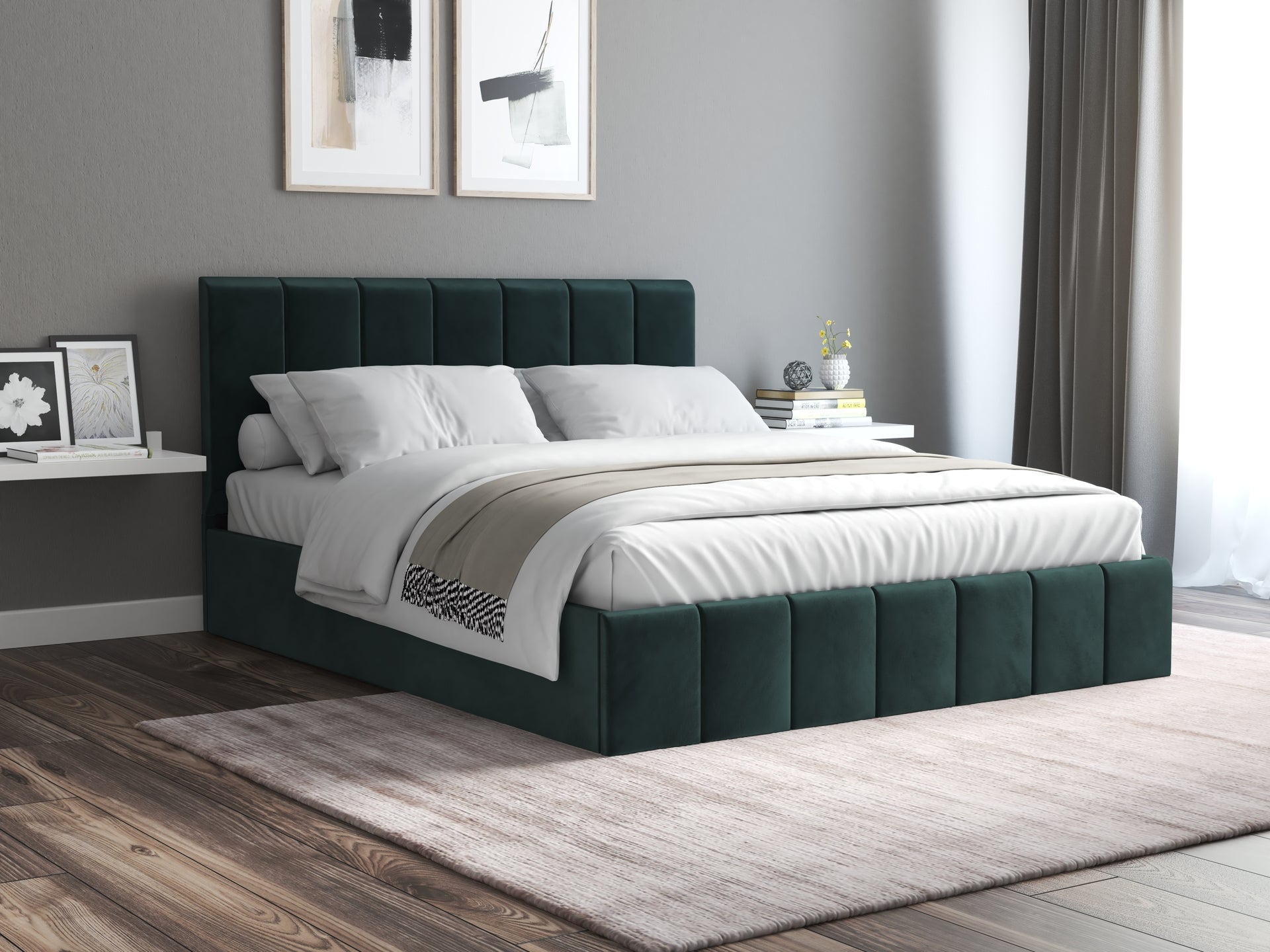 Pat Cozy, 160x200 cm, verde, suport saltea din PAL